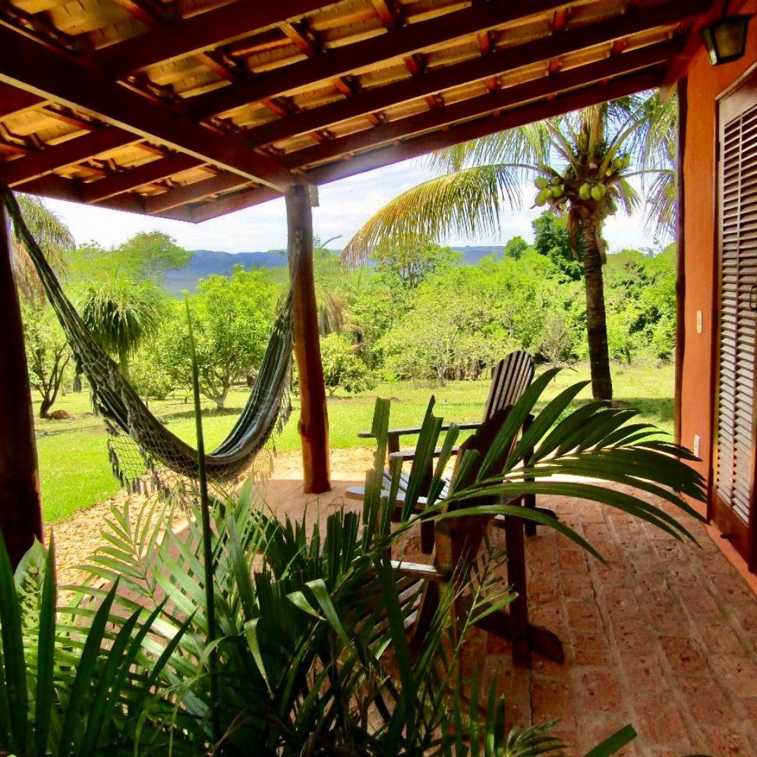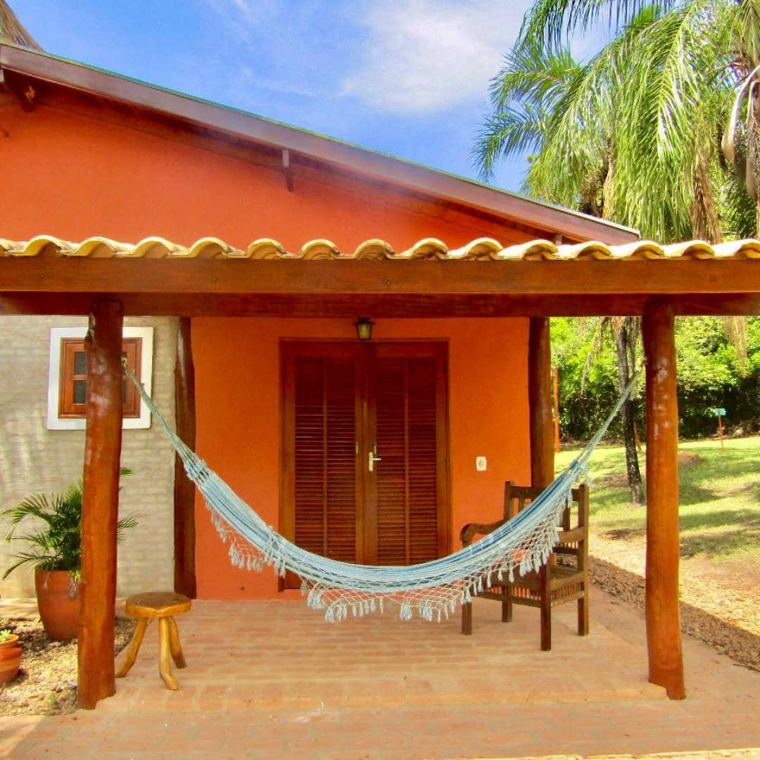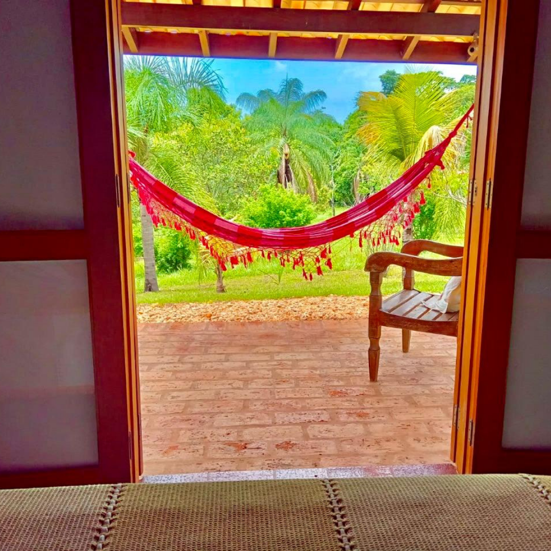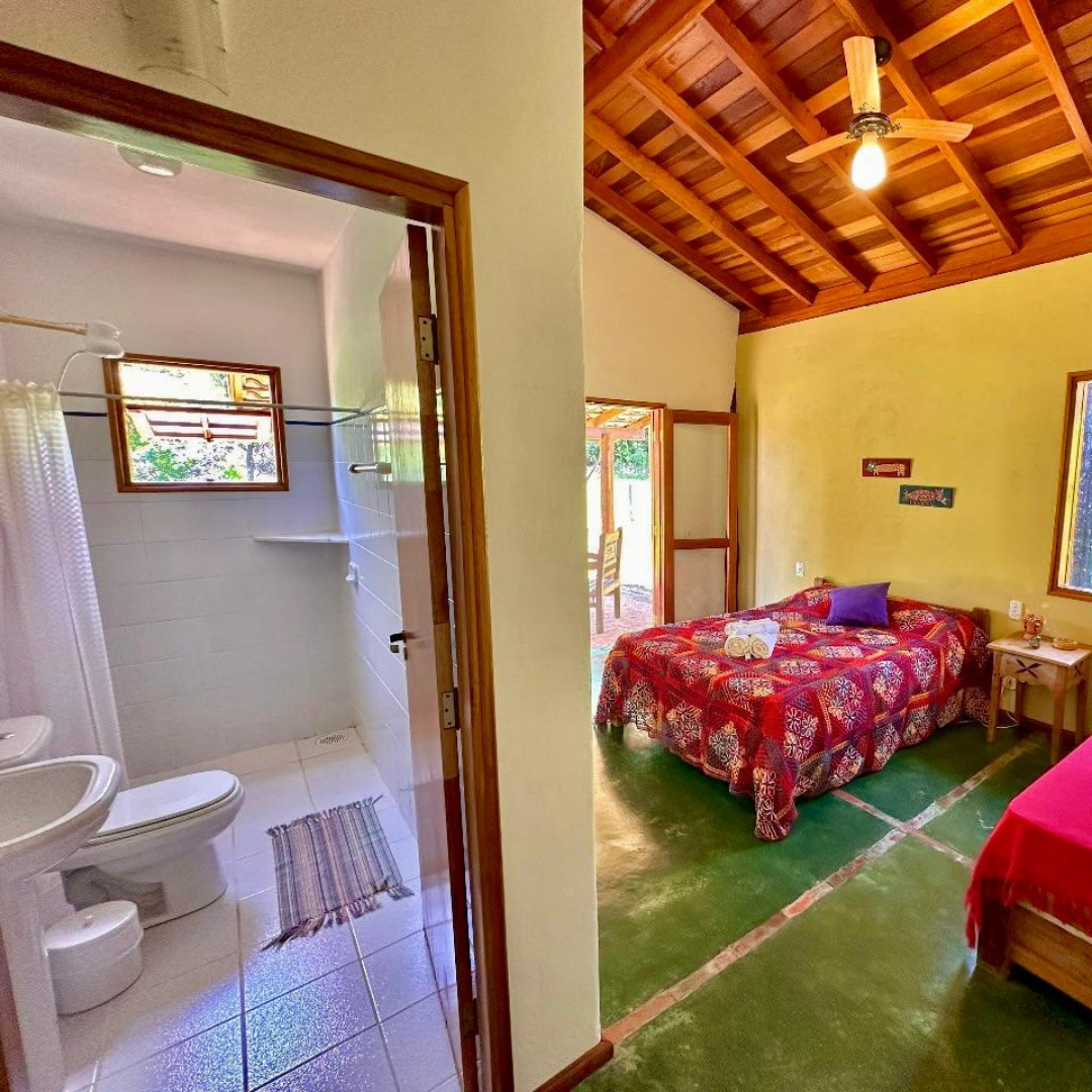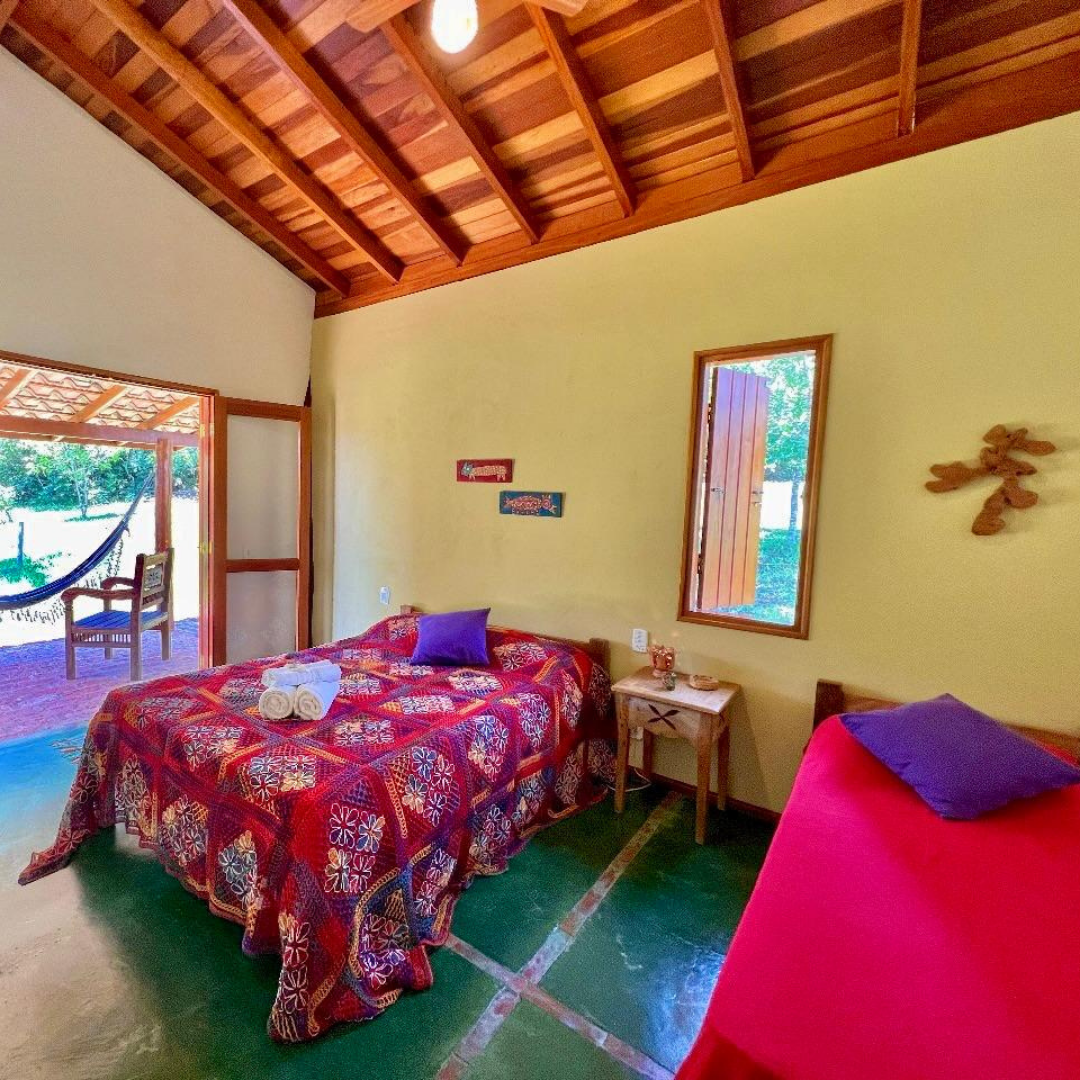 São quatro chalés aconchegantes, cada um com capacidade para até quatro pessoas. Todos contam com quarto, banheiro privativo e varanda com rede, proporcionando conforto e privacidade em meio à natureza.